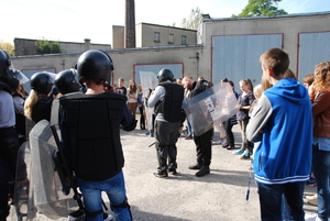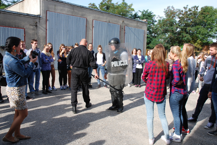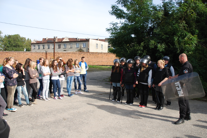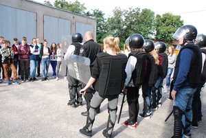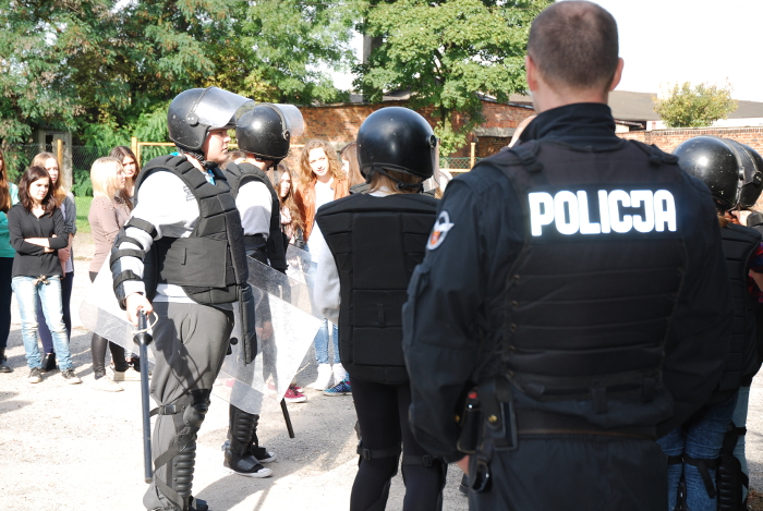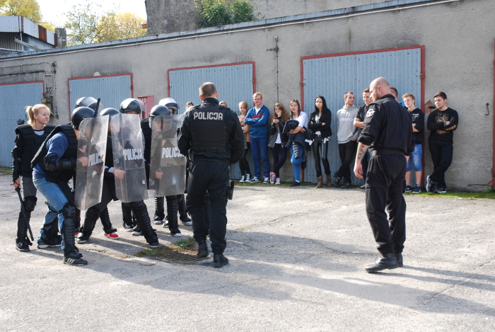 Uczniowie poznali również m.in. takie pojęcia jak tyraliera i kordon oraz rozkazy wydawane przez dowódcę. Przeprowadzone ćwiczenia praktyczne pokazały, że opanowanie i utrzymanie szyków policyjnych nie jest prostą rzeczą, zwłaszcza w sytuacji napierającego, często agresywnego tłumu.