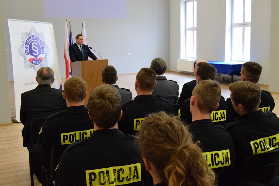 Wiceminister Zieliński gratulując pani komendant oraz nowo powołanym komendantom podkreślił, jak ważne jest wyszkolenie oraz nadzór nad służbą policjantów, gdyż błąd jednego funkcjonariusza rzutuje na wizerunek całej formacji.