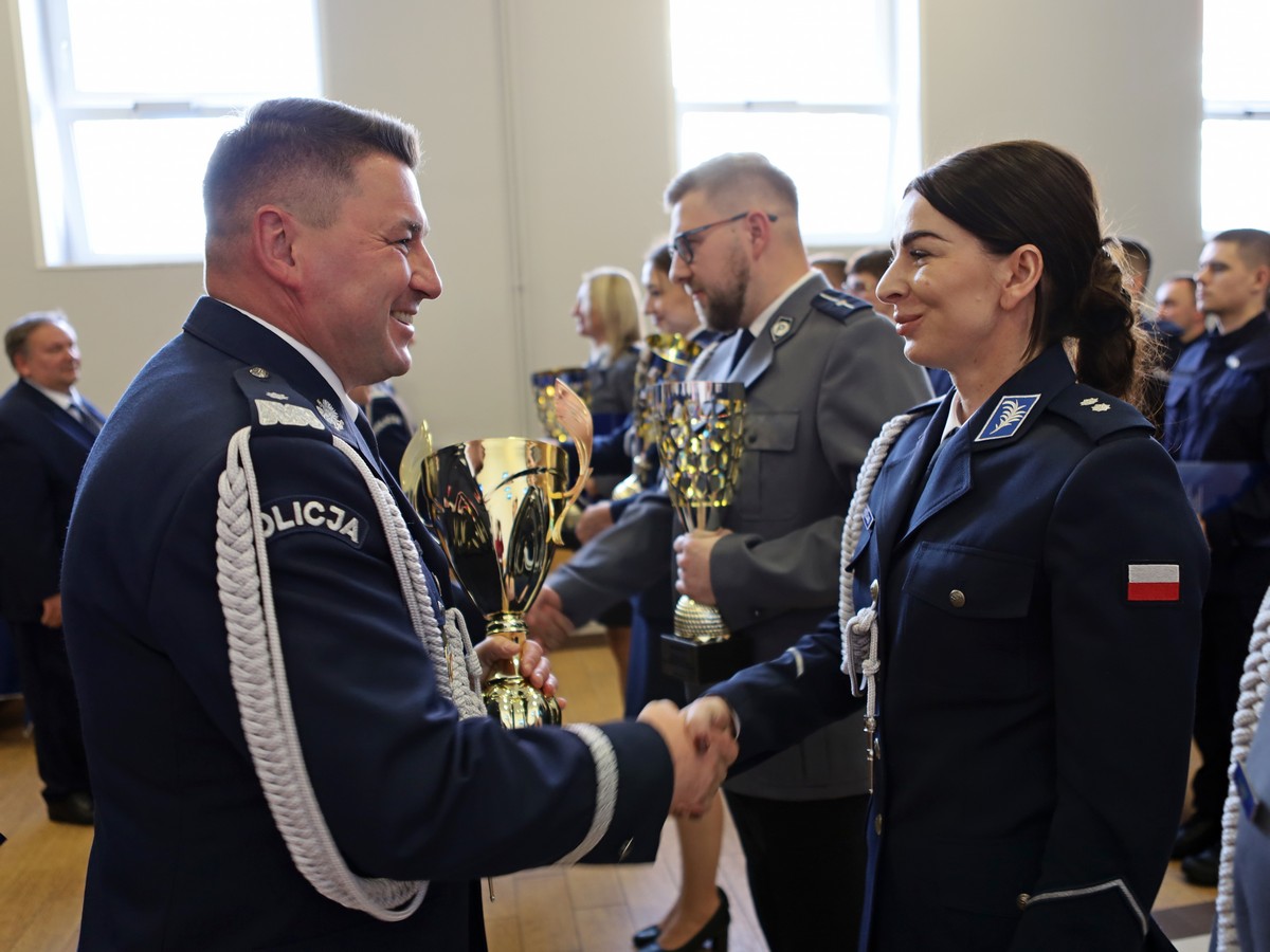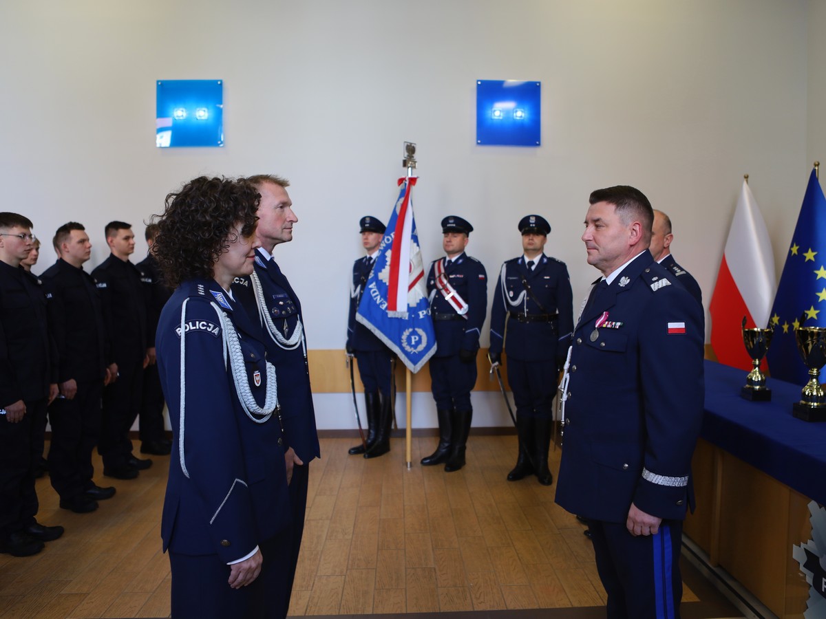 Dzisiejszy dzień był ważny również ze względu na wręcznie nagród laureatom wojewódzkiego etapu Piątego Ogólnopolskiego Konkursu dla policjantów – oskarżycieli publicznych. Patronami konkursu są Komendant Główny Policji – generalny inspektor Marek Boroń oraz Okręgowa Izba Radców Prawnych, której Wicedziekan - pan Zbigniew Tur - uświetnił obecnością dzisiajszą uroczystość.
