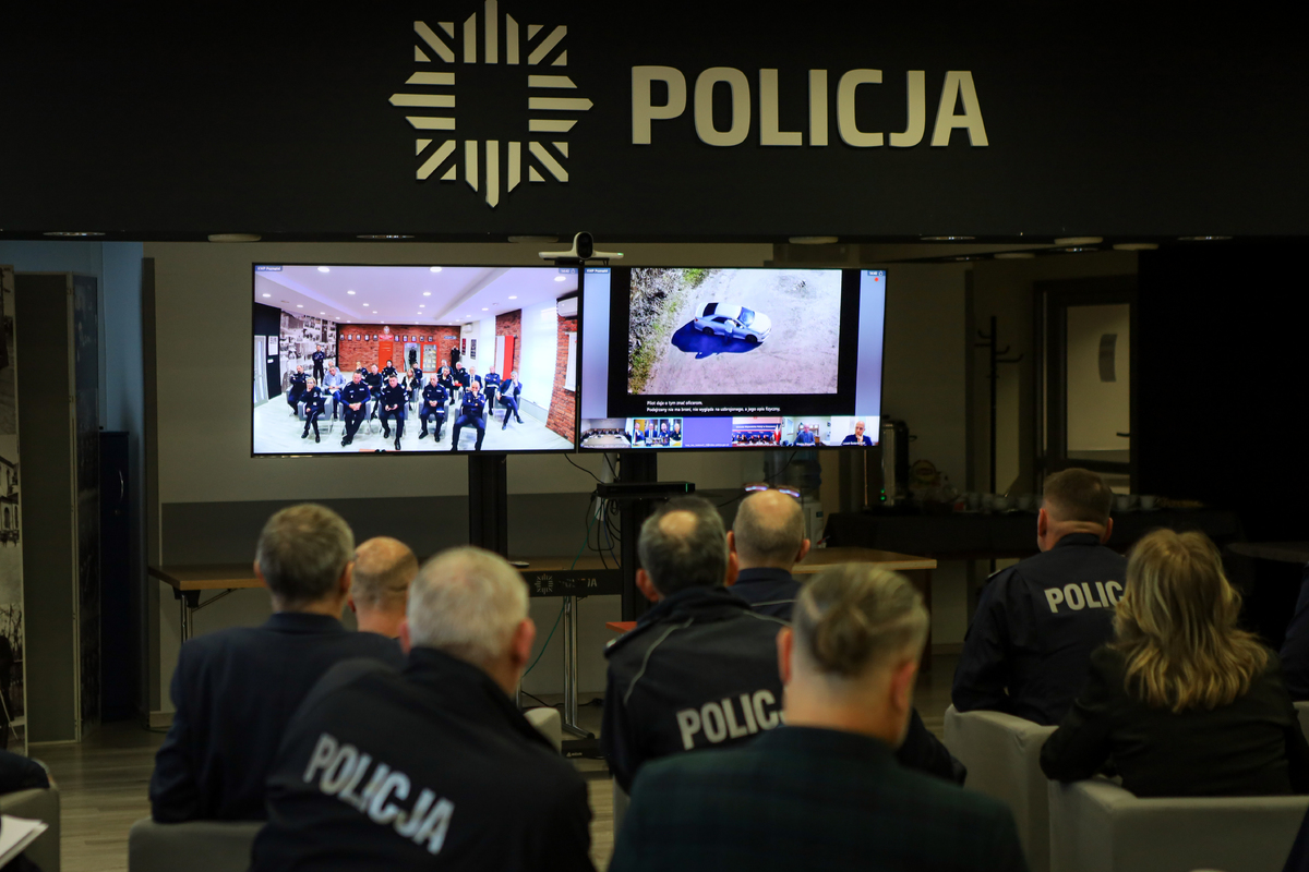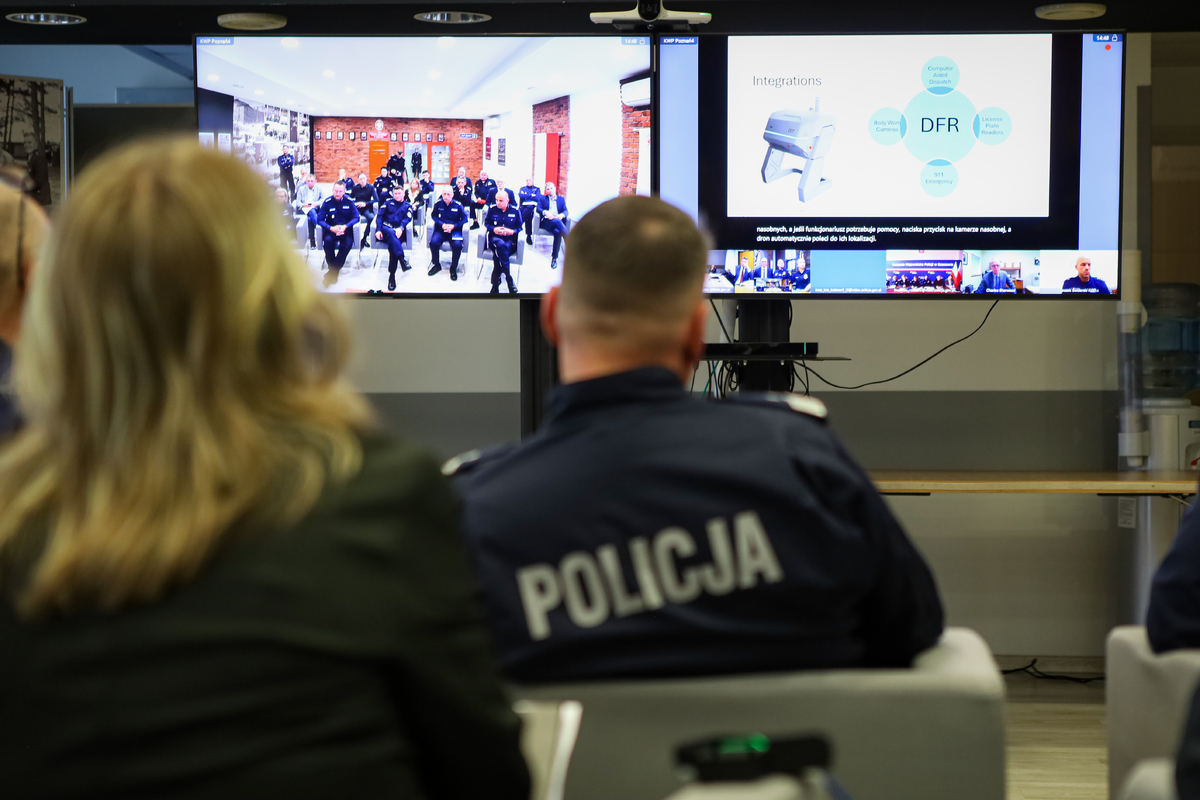 Kolejny etap to specjalistyczne szkolenia z obsługi dronów FPV dla policjantów. Pozwolą na bezpieczne rozpoznanie wnętrza pomieszczeń przed realizacjami. Jest przeprowadzane również na podstawie porozumienia z Politechniką. Odbyła się również wideokonferencja z przedstawicielami policji Milford Police Department. Nasi amerykańscy koledzy od dłuższego czasu wykorzystują drony w systemie DFR (Dron as First Responder), które są wykorzystywane do błyskawicznego dotarcia na miejsce zdarzenia. Operator zarządza nimi z centrum dowodzenia.