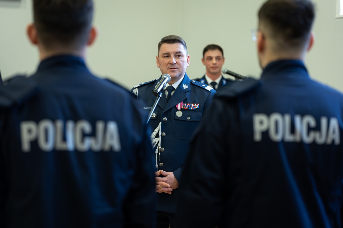 Komendant Olczyk pogratulował wszystkim podjętej decyzji. Podkreślił jak ważne jest dobre, merytoryczne przygotowanie do pełnienia służby. Im więcej wiedzy posiada policjant tym pewniej się będzie czuł podczas wykonywania swoich obowiązków. Życzył im satysfakcji z wykonywanych obowiązków oraz realizacji własnych ambicji i marzeń. Przypomniał także, że policjantem jest się również w czasie wolnym od służby, wskazując jednocześnie na wagę służby społeczeństwu.