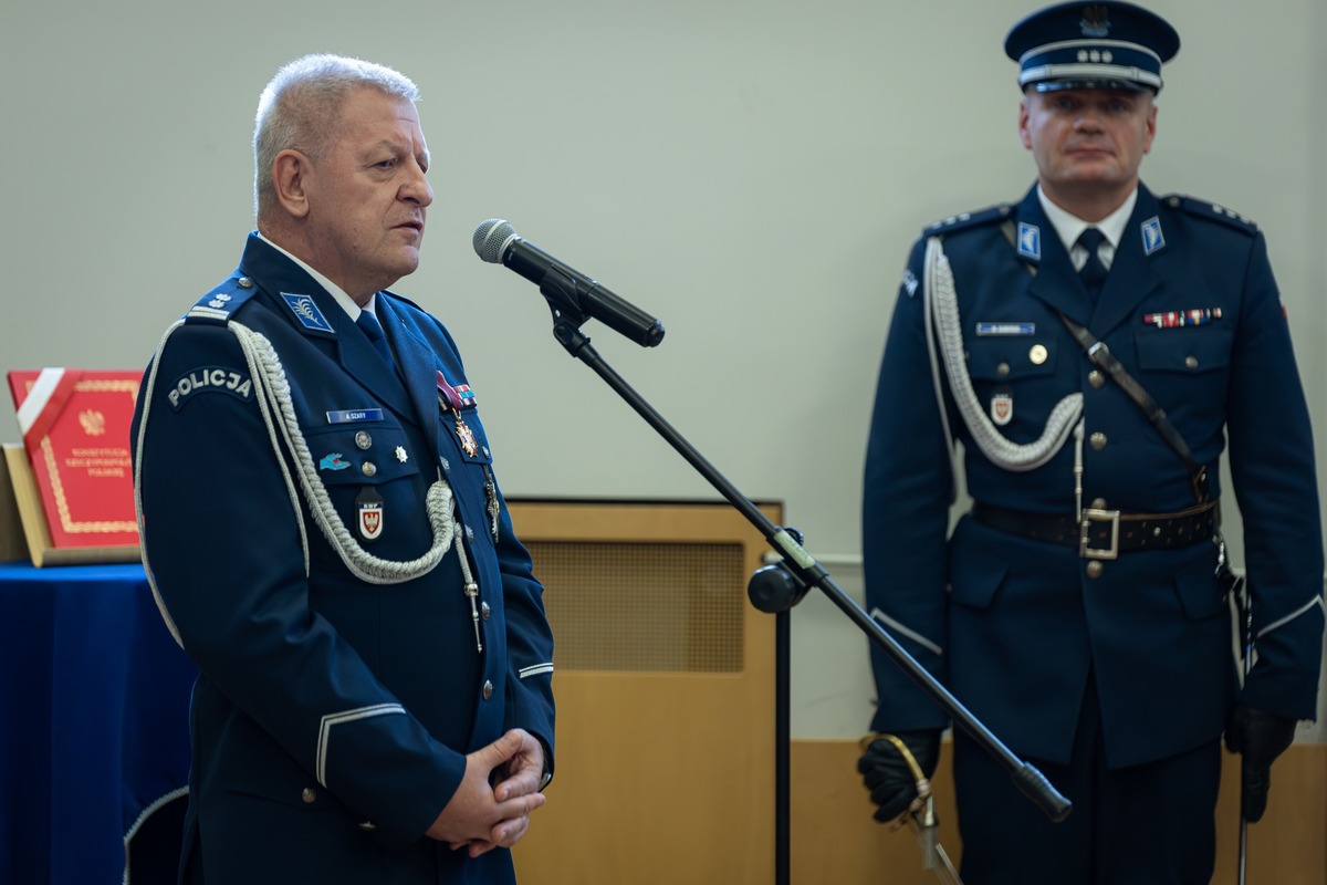 W uroczystości udział wziął również jego Zastępca - insp. Tomasz Barłożek. Na sali obecni byli również Przewodniczący NSZZ Policjantów woj. wielkopolskiego mł. insp. Andrzej Szary, kapelan wielkopolskich policjantów ks. kan. Grzegorz Szafraniak oraz Komendanci Miejscy oraz Powiatowi i Dowódca Oddziału Prewencji Policji w Poznaniu.
