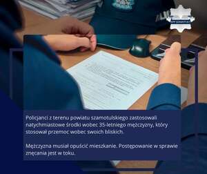 Na podstawie zgromadzonych informacji policjanci zastosowali wobec mężczyzny policyjne środki w postaci nakazu opuszczenia miejsca zamieszkania oraz zakazu zbliżania się do miejsca zamieszkania i jego bezpośredniego otoczenia, zakazu zbliżania się i kontaktowania z osobami doznającymi przemocy. W obecności funkcjonariuszy 34-latek spakował najpotrzebniejsze rzeczy i opuścił mieszkanie. Policyjne środki obowiązują 14 dni i na wniosek osoby doznającej przemocy mogą zostać przedłużone przez Sąd.