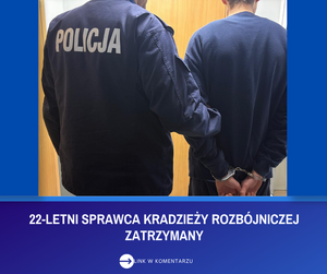 Wczoraj, tj. 01 kwietnia br. policjanci z Komendy Powiatowej Policji w Środzie Wielkopolskiej zatrzymali 22-latka, który dokonał kradzieży rozbójniczej w jednym ze sklepów na terenie miasta. Mężczyzna usłyszał już zarzuty. Grozi mu teraz do 5 lat pozbawienia wolności. O jego losie zadecyduje sąd.