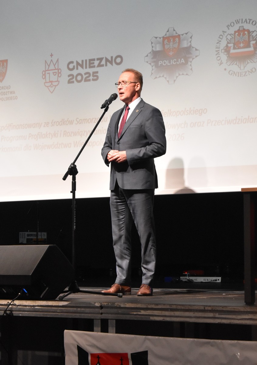 W wydarzeniu uczestniczyli m.in.: I Zastępca Komendanta Wojewódzkiego Policji insp. Sławomir Piekut oraz Prezydent Miasta Gniezna Michał Powałowsk, którzy podkreślili znaczenie edukacji profilaktycznej i wczesnej interwencji w zakresie bezpieczeństwa młodzieży.