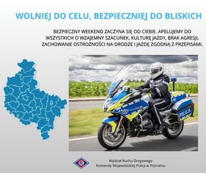 Weekend to nie powód, by tracić głowę. Bezpieczeństwo zaczyna się od nas samych. Apelujemy do wszystkich o wzajemny szacunek, kulturę jazdy, brak agresji, zachowanie ostrożności na drodze i jazdę zgodną z przepisami.