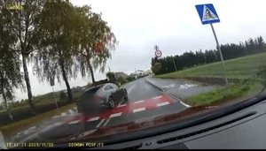 Kierujący Audi, mając za nic ograniczenia w ruchu, przejazd dla rowerzystów, wyprzedził inny pojazd wykonując manewry pomiędzy spowalniaczami ruchu.