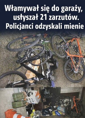 22-letni mieszkaniec Konina, podejrzany o serię włamań do garaży, usłyszał 21 zarzutów. Policjanci odzyskali skradzione mienie o wartości około 20 tysięcy złotych. O jego dalszym losie zdecyduje sąd.
